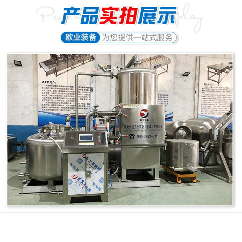 1、加熱、油炸、儲油、脫油、脫水、油過濾一體化設計,在真空下連續性完成,產品含油量低,產品處于負壓狀態,在這種相對缺氧的條件下進行食品加工,可以減輕甚至避免氧化作用所帶來的危害。在負壓狀態,以油作為傳熱媒介,食品內部的水分(自由水和部分結合水)會急劇蒸發而噴出,使組織形成疏松多孔的結構;