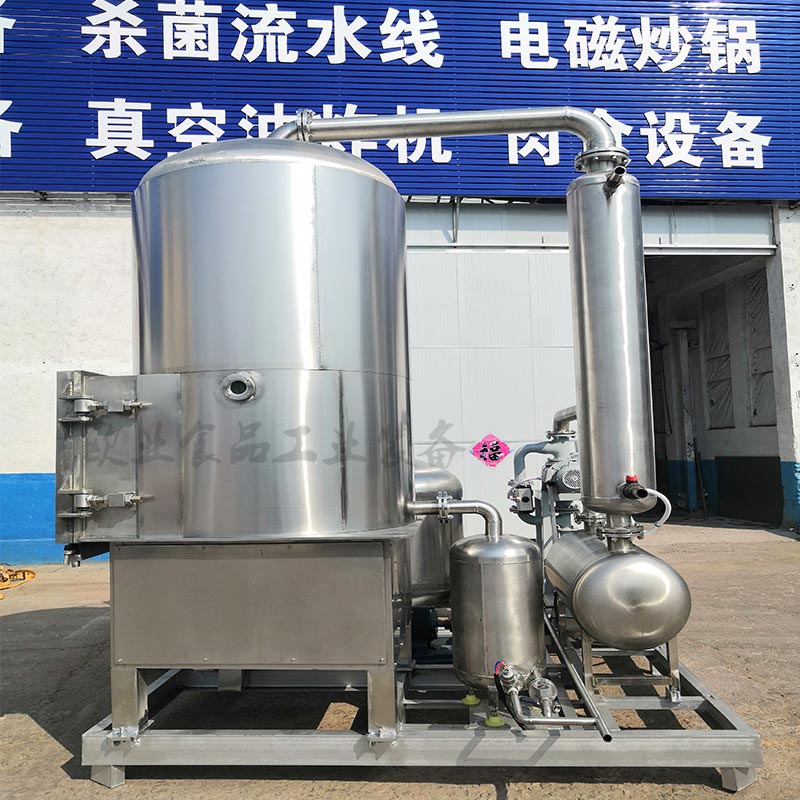 保證產品健康安全。該設備與食品直接接觸的主要部件全部采用不銹鋼制作,符合HACCP的要求。而且它的軸封關鍵部件全部采用德國產品,保證了產品的質量。另外,它還配有專門的洗油裝置及排污口,潔凈衛生。并且該設備在真空負壓閥位置也配有專用的消音設備,能夠減少噪音,同時防止灰塵進入油炸鍋內。